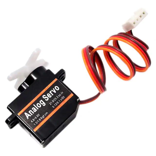 This is manufactured by Seeed Technology Co., Ltd. The manufacturer part number is 316010005. It has a rated torque (oz-in / mNm) of 25.2 / 178. It is assigned with possible HTSUS value of 8501.10.4060. The product is rohs compliant. Moreover, it has wire leads with connector terminal style. It comes in dc motor configuration. It performs basic function of servomotor, rc (hobby). It also exhibits voltage rating of 5vdc. It has a 1.087" (27.60mm) mounting hole space. It provides maximum rpm up to 100 rpm. It is shipped in bulk. The product's diameters include rectangular - 0.453" x 0.906" (11.50mm x 23.00mm). It has a long 18 weeks standard lead time. Its typical moisture sensitivity level is 1 (unlimited). The typical product's weight is 0.019 lb (8.62 g). The product es08a, is a highly preferred choice for users. The product is designated with the ear99 code number