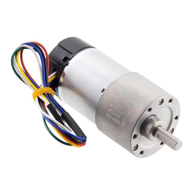 This is manufactured by Pololu Corporation. The manufacturer part number is 2828. It is assigned with possible HTSUS value of 8501.10.4060. The product is rohs3 compliant. Moreover, it has wire leads with connector terminal style. This high-efficiency motor is a brushed. It comes in dc motor configuration. It performs basic function of gearmotor. It also exhibits voltage rating of 12vdc. In addition, it is vendor undefined. The typical length of shaft and bearing is 0.866" (22.00mm). It provides maximum rpm up to 67 rpm. Shaft with a 0.236" (6.00mm) diameter. It is shipped in bulk. The product is incremental encoder. The product's diameters include round - 1.457" dia (37.00mm). Features 150 gear reduction ratio. Its typical moisture sensitivity level is not applicable. The product is designated with the ear99 code number
