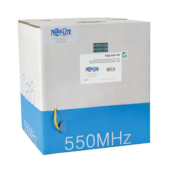This is manufactured by Tripp Lite. The manufacturer part number is N222-01K-YW. It is assigned with possible HTSUS value of 8544.49.3080. The product is rohs compliant. Its jacket is made from highly insulated poly-vinyl chloride (pvc) materials. The product's typical Applications include uses in datacom. It features 8 (4 pair) conductors. It also features a solid conductor strand. It is shipped in bulk. Moreover, the product has a wire gauge of 23 awg. Its typical moisture sensitivity level is not applicable. Its accurate length is 1000.0' (304.8m). It has a long 2 weeks standard lead time. The conductor is made from copper, bare material. It is a typical multi-pair, cat6 cable. It carries a 500 v of voltage. The product is designated with the ear99 code number It comes in nice yellow colour.