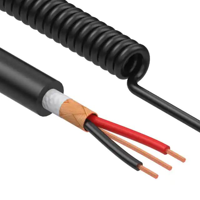 This is manufactured by Tensility International Corp. The manufacturer part number is 31-00006. It is rated with ul style 20280. It is assigned with possible HTSUS value of 8544.49.3080. The product is rohs3 compliant. Its jacket is made from highly insulated thermoplastic polyurethane (tpu) materials. It also features a 26/0.005" conductor strand. It features 2 conductors. In addition, it is reach unaffected. It is shipped in bulk. Moreover, the product has a wire gauge of 22 awg. The item is shielded with a braid. Furthermore, the insulated jacket is a 0.0315" (0.800mm) thick. Its typical moisture sensitivity level is 1 (unlimited). Its accurate length is 3.68' (1.12m). The conductor offers excellent insulation due to thermoplastic elastomer (tpe) materials. It has a long 16 weeks standard lead time. It covers shielding capability up to 65%. The splendid features of the product include drain wire. The diameter of the jacket is 0.185" (4.70mm). The conductor is made from copper, bare material. It is a typical round - coiled cable. It carries a 300 v of voltage. The product is shielded with a robust copper, bare shield materials. The product is designated with the ear99 code number It comes in nice black colour.