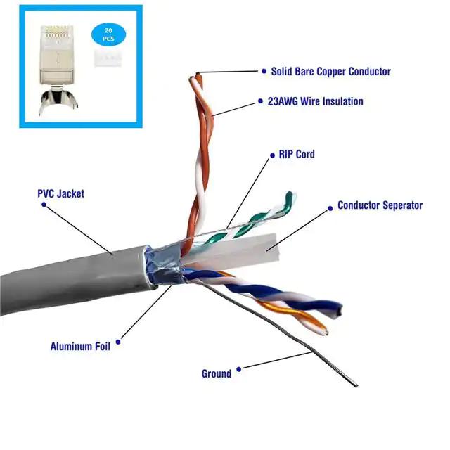 This is manufactured by Micro Connectors, Inc.. The manufacturer part number is TR4-560WOU-KIT. It is rated with ul style. It is assigned with possible HTSUS value of 8544.42.2000. The product is rohs compliant. Its jacket is made from highly insulated poly-vinyl chloride (pvc) materials. It features 8 (4 pair twisted) conductors. It also features a solid conductor strand. It is shipped in bulk. Moreover, the product has a wire gauge of 23 awg. The item is shielded with a foil, braid. Its typical moisture sensitivity level is not applicable. Its accurate length is 500.0' (152.4m). The splendid features of the product include includes 20pcs rj45 connectors, uv resistant, waterproof. The diameter of the jacket is 0.283" (7.19mm). The conductor is made from copper material. The product tr4, is a highly preferred choice for users. It is a typical multi-pair, cat6 cable. It comes in nice white colour.