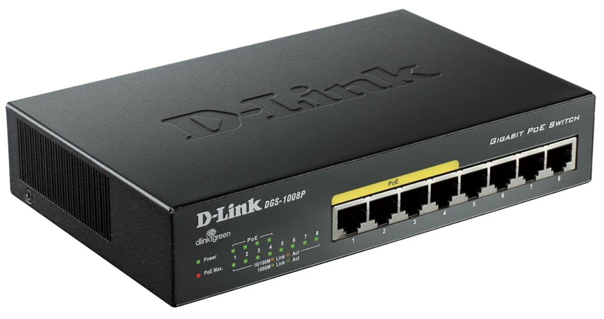 This is DGS-1008P 8 Port Gigabit Ethernet Switch manufactured by D-Link. The manufacturer part number is DGS-1008P/E. The given dimensions of the product include 190 x 120 x 38mm. This product features 8 number of ports. In addition, the height is 38mm. Furthermore, the product is 190mm wide. The product comes in 120mm depth. Quality product with a unmanaged switch type.
