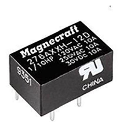 This is SPDT PCB Mount Non-Latching Relay 12V dc Coil 7 A manufactured by Schneider Electric. The manufacturer part number is 276XAXH-12D. The given dimensions of the product include 20.49 x 12.7 x 10mm. The product is available in pcb mount configuration. Robust coil power of 200mw. The coil voltage of the product is 12 v dc. The product comes in 12.7mm depth. In addition, the height is 10mm. Its accurate length is 20.49mm. Whereas, the minimum operating temperature of the product is -40°c. The product is made from sturdy silver alloy materials. It has a maximum operating temperature of +55°c. The terminal is a pcb pin type. It holds up to 720 ω coil resistance.