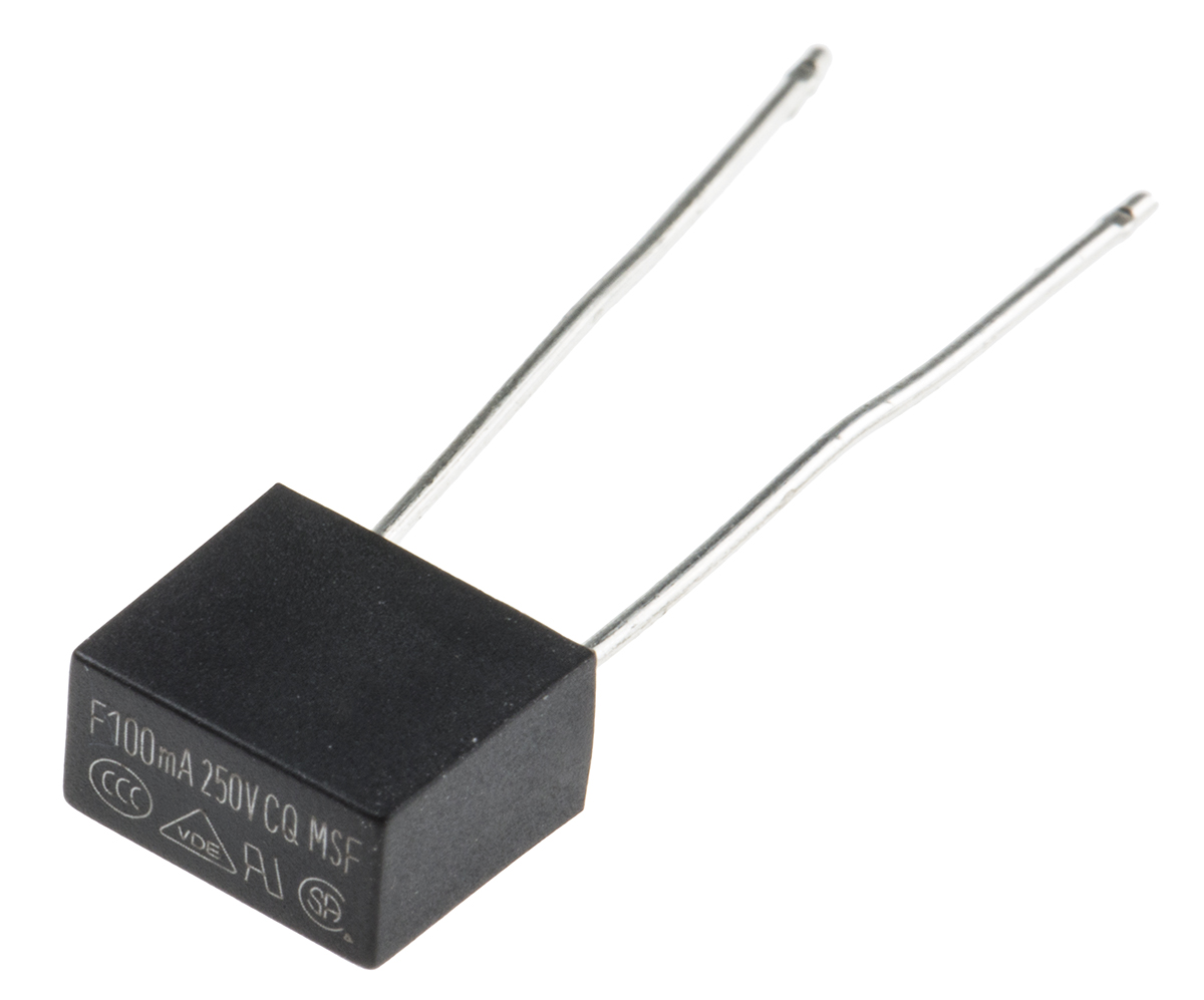This is 100mA Radial Non-Resettable Wire Ended Fuse 250V manufactured by RS Pro. The manufacturer part number is 767-5074. The product has a current rating of 100ma. Whereas, the minimum operating temperature of the product is -55°c. Moreover, the product has a nominal 250v voltage rating. The product's body is nicely designed from thermoplastic materials. It has a maximum operating temperature of +125°c.