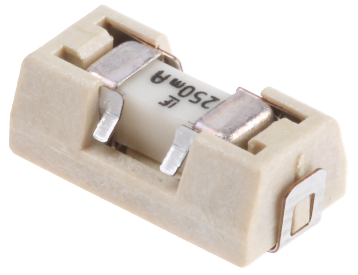 This is 250mA FF Surface Mount Fuse 125V ac/dc manufactured by Littelfuse. The manufacturer part number is 0154.250DR. The product has a current rating of 250ma. Whereas, the minimum operating temperature of the product is -55°c. Moreover, the product has a nominal 125v ac/dc voltage rating. The product's body is nicely designed from thermoplastic materials. It has a maximum operating temperature of +125°c.