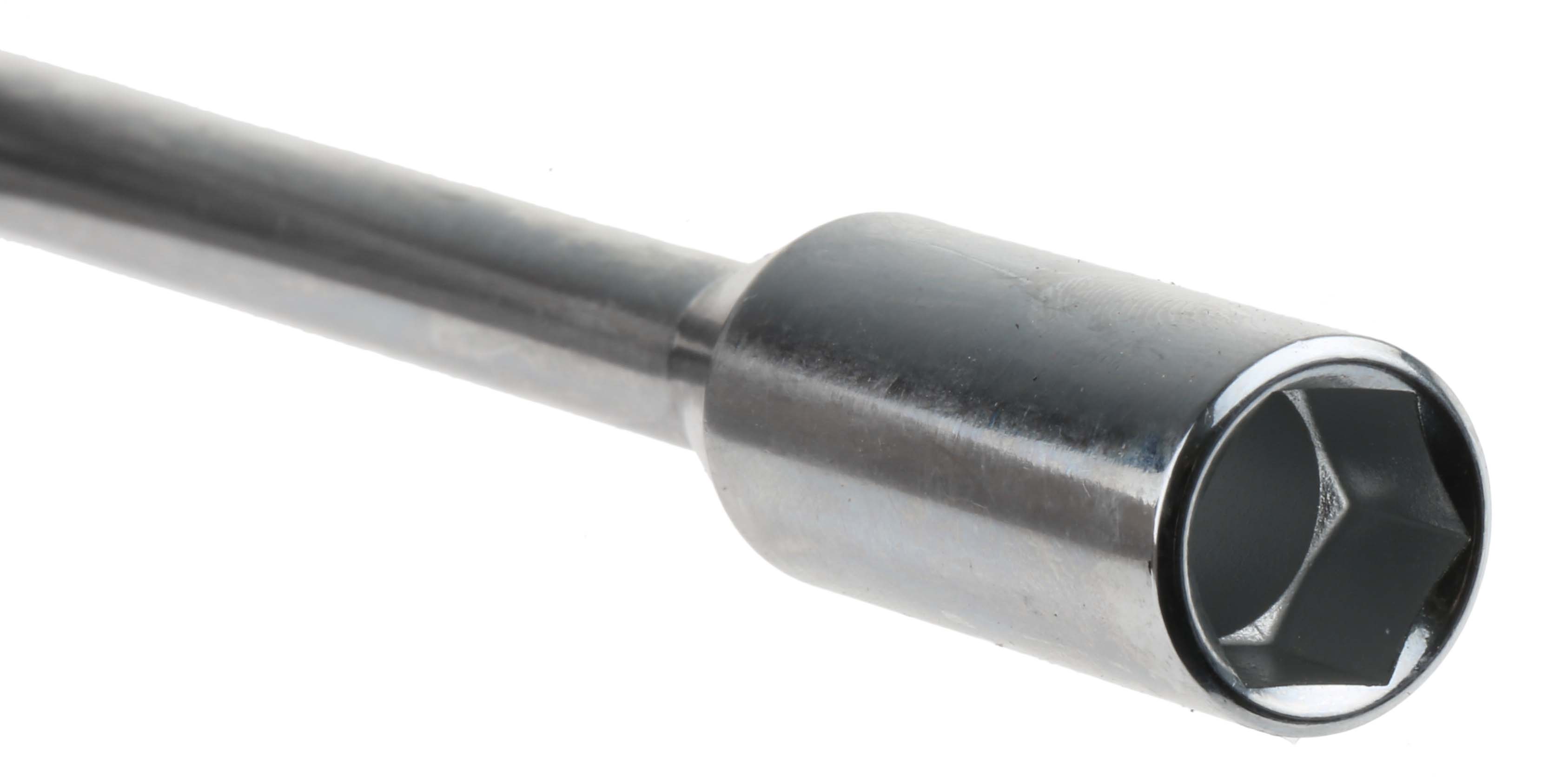 This is 125 mm Steel Soft Feel Screwdriver Nut Spinner 10 mm Tip PP; TPR manufactured by RS Pro. The manufacturer part number is 499-2357. The built-in exquisite tip is a hexagon tip.