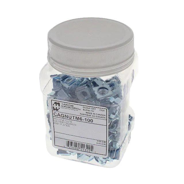 This is manufactured by Hammond Manufacturing. The manufacturer part number is CAGNUTM6-100. It is assigned with possible HTSUS value of 7318.16.0085. The product is rohs3 compliant. It has a typical thread size of m6. It comes in cage configuration. Furthermore, the product is plated with zinc. In addition, it is reach unaffected. It is shipped in canister. Its typical moisture sensitivity level is 1 (unlimited). It has a long 2 weeks standard lead time. Moreover, it corresponds to cagnutm6, a base product number of the product. The product is designated with the ear99 code number