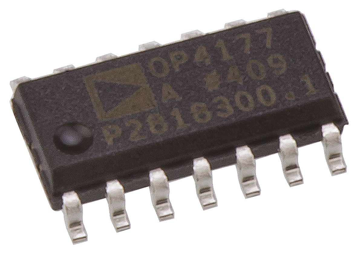 This is Op Amp 1.3MHz 14-Pin SOIC manufactured by Analog Devices. The manufacturer part number is OP4177ARZ. The given dimensions of the product include 8.75 x 4 x 1.5mm. The product is available in surface mount configuration. In addition, the height is 1.5mm. Furthermore, the product is 4mm wide. Its accurate length is 8.75mm. Whereas, the minimum operating temperature of the product is -40 °c. It has a maximum operating temperature of +125 °c.