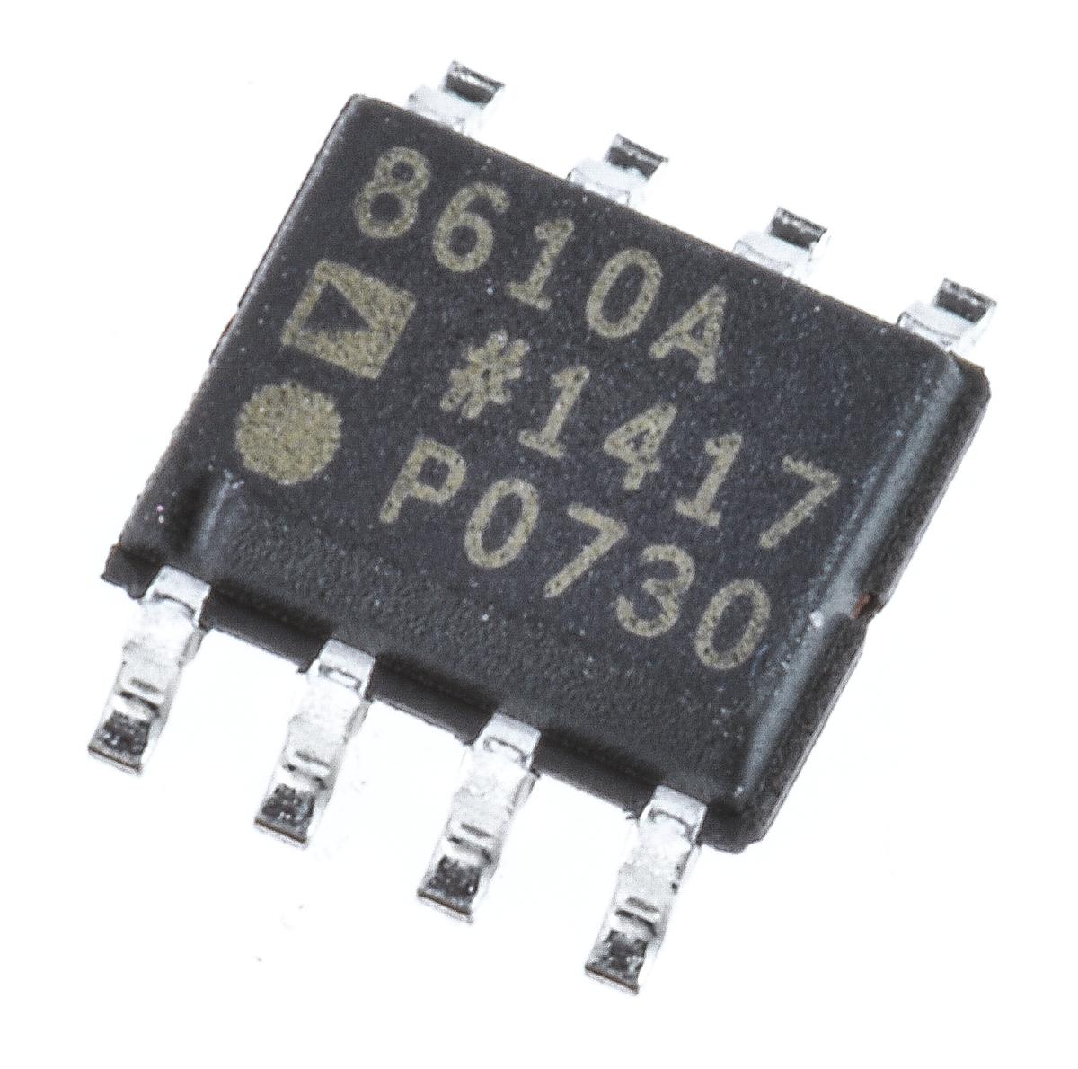 This is Op Amp 25MHz 8-Pin SOIC manufactured by Analog Devices. The manufacturer part number is AD8610ARZ. The given dimensions of the product include 5 x 4 x 1.5mm. The product is available in surface mount configuration. In addition, the height is 1.5mm. Furthermore, the product is 4mm wide. Its accurate length is 5mm. Whereas, the minimum operating temperature of the product is -40 °c. It has a maximum operating temperature of +125 °c.