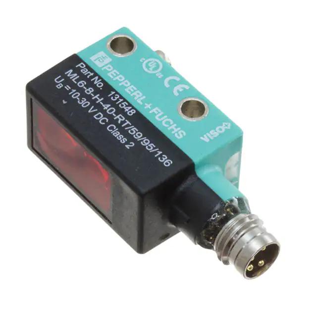 This is manufactured by Pepperl+Fuchs, Inc.. The manufacturer part number is ML6-8-H-40-RT/59/95/136. It is assigned with possible HTSUS value of 8541.49.8000. The product is rohs3 compliant. Equipped with diffuse sensing mechanism. The product has -20°c ~ 60°c operating temperature range. It has adjustment flexibility and is adjusted at a adjustable. The product offers connector, m8 connection mechanism. It features a 0.394" ~ 1.575" (10mm ~ 40mm) of sensing distance. It responds within 500µs. It is shipped in box. Its typical moisture sensitivity level is not applicable. It is IP rated with ip67, ip69k. It has optimum voltage supply of 10v ~ 30v. It boasts light-on/dark-on output configuration. The product is designated with the ear99 code number Moreover, it corresponds to ml6-8, a base product number of the product. Uses red led as a light source.