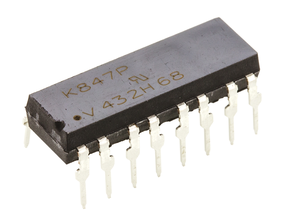 This is DC Input Transistor Output Quad Optocoupler Through Hole 16-Pin DIP manufactured by Vishay. The manufacturer part number is K847PH. The product is available in through hole configuration. It is comprised of 16 pins. It is supplied with 4 channels.