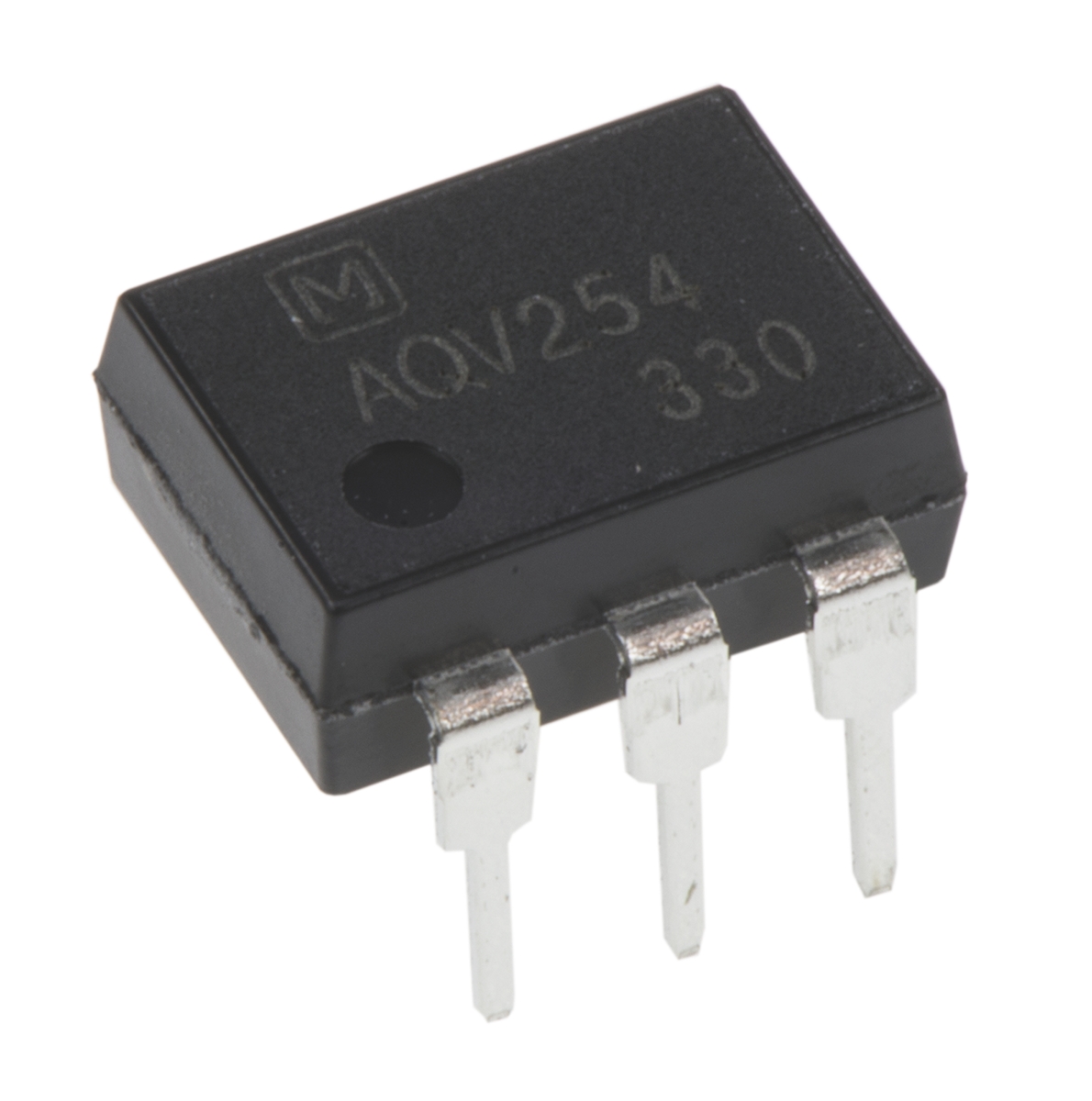 This is DC Input MOSFET Output Optocoupler Through Hole 6-Pin DIP manufactured by Panasonic. The manufacturer part number is AQV254. The product is available in through hole configuration. It is comprised of 6 pins.