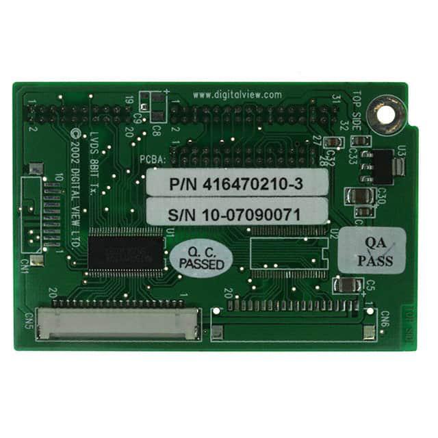 This is manufactured by Digital View Inc.. The manufacturer part number is 416470210-3. It is assigned with possible HTSUS value of 8471.80.1000. It is shipped in bulk. The product is rohs3 compliant. It is a type of board - add-on accessory. In addition, it is reach unaffected. Its typical moisture sensitivity level is 1 (unlimited). The product is suitable for use with lvds panels. It has a long 20 weeks standard lead time. The product is designated with the ear99 code number