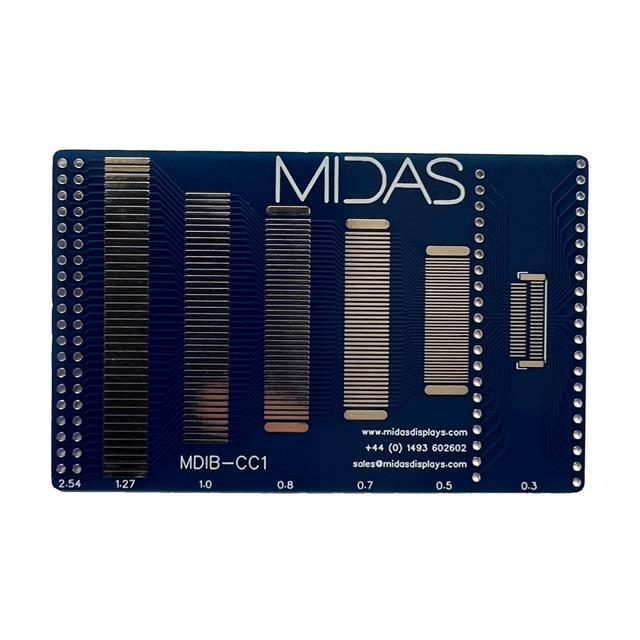 This is manufactured by Midas Displays. The manufacturer part number is MDIB-CC1. It is assigned with possible HTSUS value of 9013.90.1000. It is shipped in tray. The product mcib, is a highly preferred choice for users. The product is rohs compliant. It is a type of interconnect board accessory. In addition, it is reach unaffected. Its typical moisture sensitivity level is not applicable. The product is suitable for use with tft / lcd displays. The product is designated with the ear99 code number