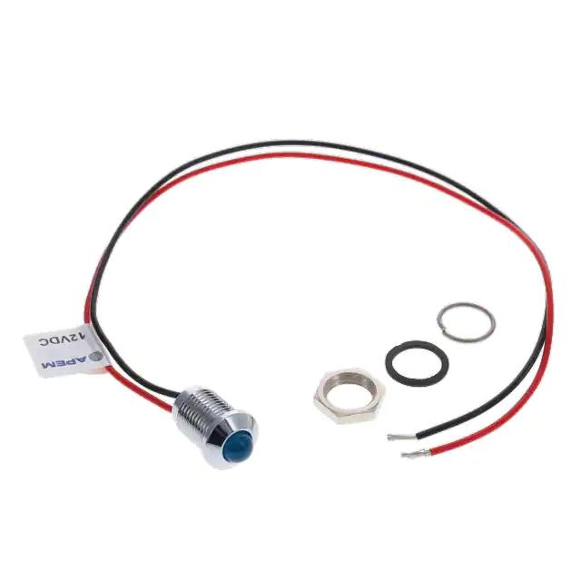 This is manufactured by APEM Inc.. The manufacturer part number is Q8P5CXXB12E. It is rated with dc. It is assigned with possible HTSUS value of 8541.41.0000. The product is rohs3 compliant. Moreover, it has wire leads - 7.87" (200.00mm) terminal style. Furthermore, 100° is the viewing angle of the product. Features a 20ma current in A. On the other hand, 1600mcd is the millicandela rating of the bespoke product. It also has a 0.315" (8.00mm) dimensional features. It comes in led configuration. The product has a nice round shape. It comes in round with domed top lens style. In addition, it is reach unaffected. It has an attractive and classic blue colour. It is shipped in tray. Its typical moisture sensitivity level is not applicable. The lens is blue in colour. It is IP rated with ip67. While its lens size is 5.00mm dia. The product is supplied with a diffused lens transparency. The product q8, is a highly preferred choice for users. It carries a 12v of voltage. Moreover, it corresponds to q8p5cxxb, a base product number of the product. The product is designated with the ear99 code number