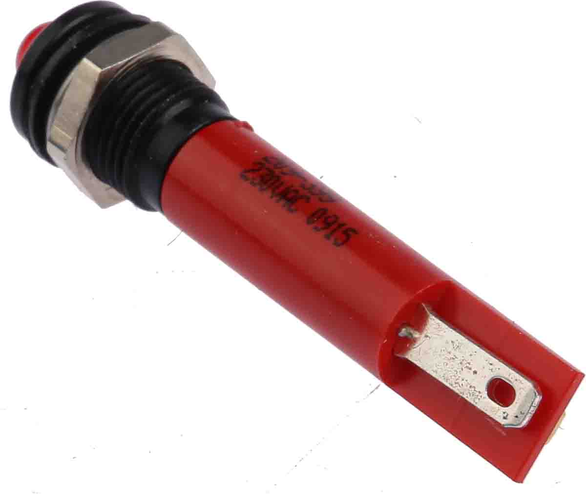 This is Red LED Indicator 230 V ac 5 mm Lamp Size 8mm Mounting Hole Size manufactured by RS Pro. The manufacturer part number is 209-399. The product has a current rating of 3ma. Moreover, the product has a nominal 230v ac voltage rating. Its accurate length is 40mm. It is a type of led lamp.