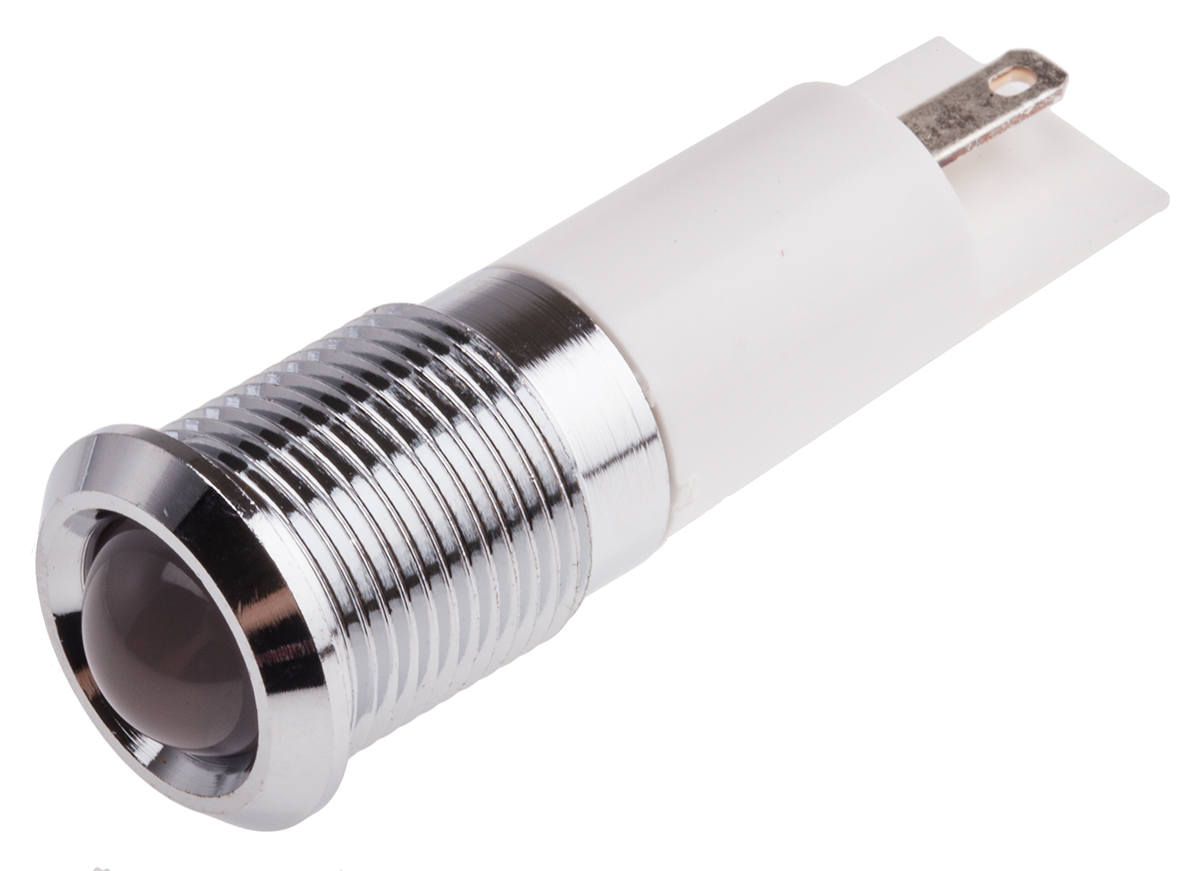 This is Prominent Indicator Panel Mount 14mm Mounting Hole Size White LED Faston Solder Lug Termination 10 mm Lamp Size manufactured by RS Pro. The manufacturer part number is 848-4614. The product has a current rating of 3ma. Moreover, the product has a nominal 220v ac voltage rating. Its accurate length is 38.5mm. It is a type of led lamp.