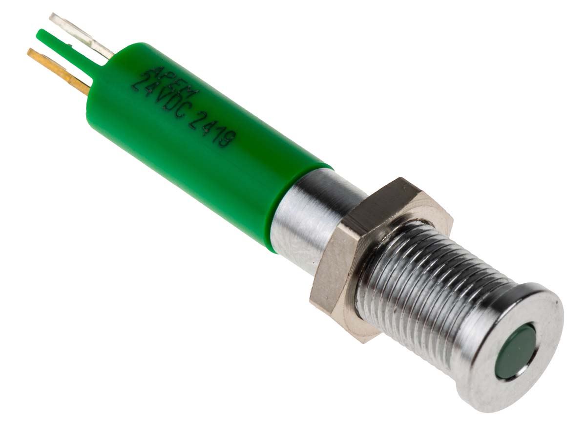 This is Green LED Indicator 24 V dc 3 mm Lamp Size 6mm Mounting Hole Size IP67 manufactured by RS Pro. The manufacturer part number is 700-1583. Moreover, the product has a nominal 24v dc voltage rating. Its accurate length is 27mm. The product has a current rating of 20ma. It is a type of led lamp.