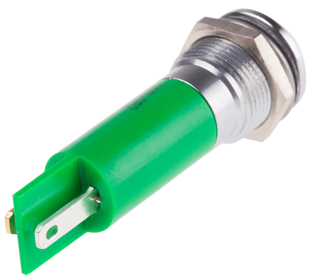 This is Green LED Indicator 130 V ac 8 mm Lamp Size 12mm Mounting Hole Size IP67 manufactured by RS Pro. The manufacturer part number is 205-252. The product has a current rating of 6ma. Moreover, the product has a nominal 130v ac voltage rating. Its accurate length is 56mm. It is a type of led lamp.