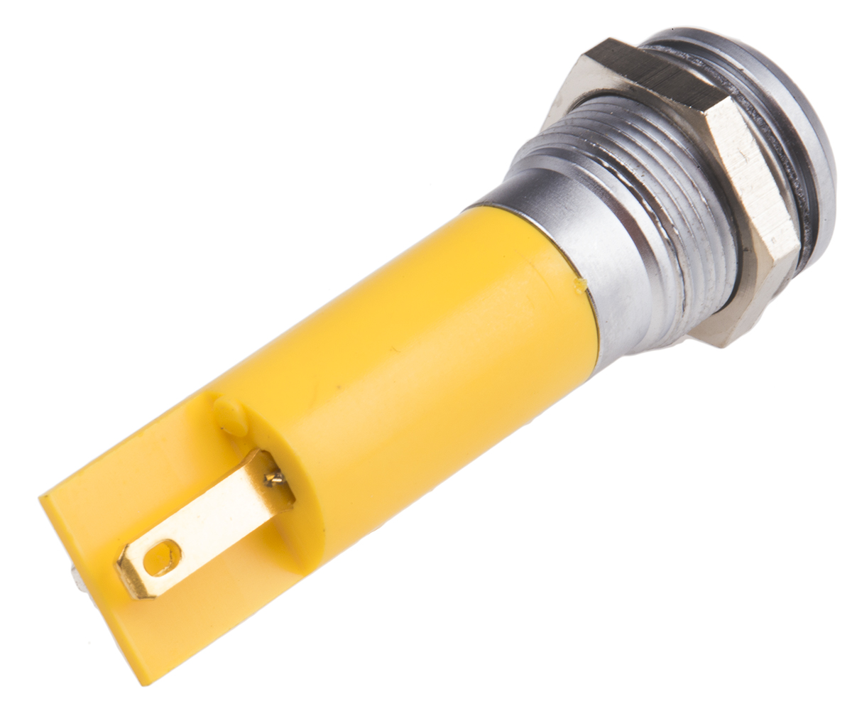 This is Yellow LED Indicator 230 V ac 8 mm Lamp Size 12mm Mounting Hole Size IP67 manufactured by RS Pro. The manufacturer part number is 209-585. The product has a current rating of 3ma. Moreover, the product has a nominal 230v ac voltage rating. Its accurate length is 56mm. It is a type of led lamp.
