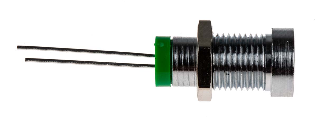 This is Green LED Indicator 2 V dc 5 mm Lamp Size 8mm Mounting Hole Size IP67 manufactured by RS Pro. The manufacturer part number is 212-086. The product has a current rating of 20ma. Moreover, the product has a nominal 2v dc voltage rating. Its accurate length is 32mm. It is a type of led lamp.