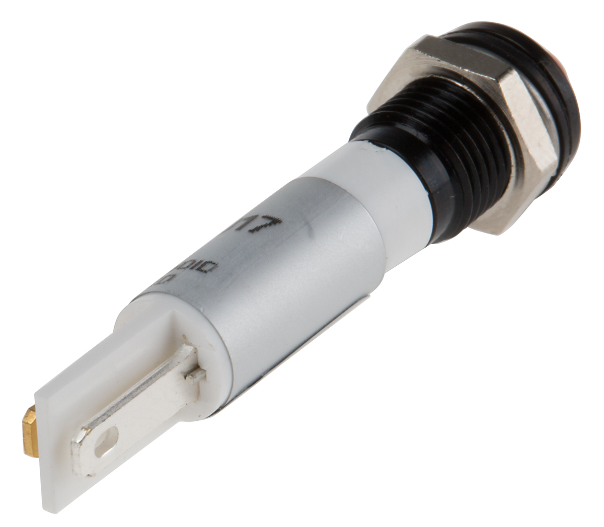 This is Prominent Indicator Panel Mount 8mm Mounting Hole Size Orange LED Solder Lug Termination 8.5 mm Lamp Size manufactured by RS Pro. The manufacturer part number is 843-2486. The product has a current rating of 20ma. Moreover, the product has a nominal 21.6 → 26.4v dc voltage rating. Its accurate length is 28.9mm. It is a type of led lamp.