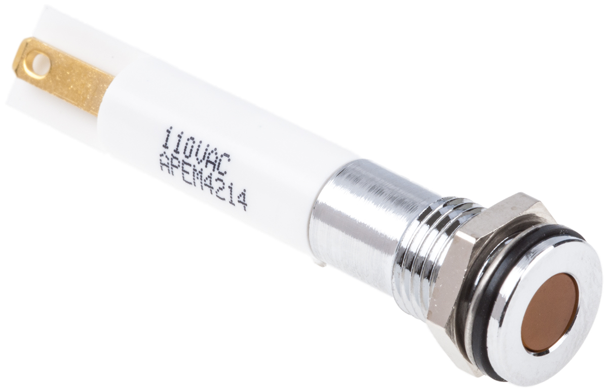 This is Orange LED Indicator 110 V ac 9.5 mm Lamp Size 8mm Mounting Hole Size IP67 manufactured by RS Pro. The manufacturer part number is 846-2796. The product has a current rating of 6ma. Moreover, the product has a nominal 110v ac voltage rating. Its accurate length is 34.9mm. It is a type of led lamp.