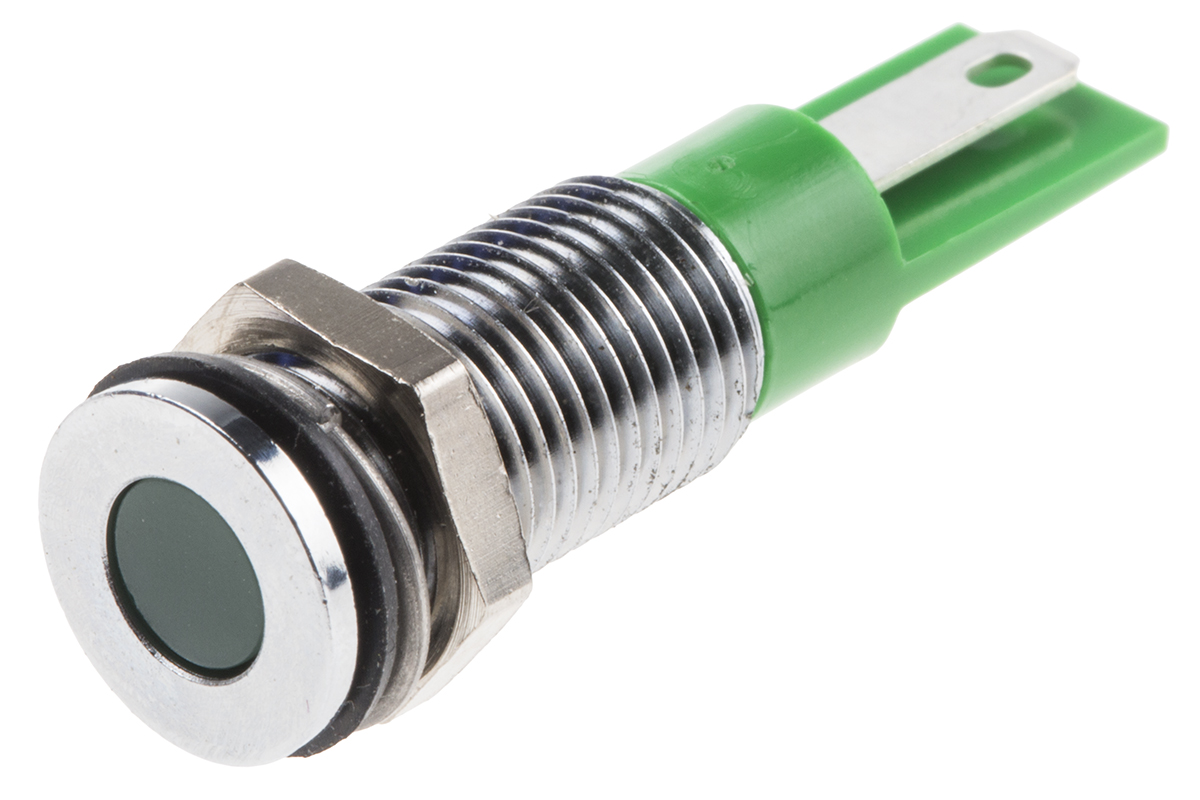 This is Green LED Indicator 24 V dc 5 mm Lamp Size 8mm Mounting Hole Size IP67 manufactured by RS Pro. The manufacturer part number is 913-8716. The product has a current rating of 20ma. Moreover, the product has a nominal 24v dc voltage rating. Its accurate length is 21.6mm. It is a type of led lamp.