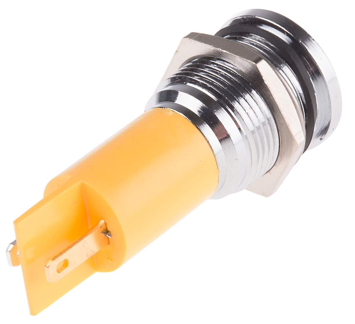 This is Yellow LED Indicator 12 V 10 mm Lamp Size 16mm Mounting Hole Size manufactured by RS Pro. The manufacturer part number is 206-817. The product has a current rating of 20ma. Its accurate length is 60mm. It is a type of led lamp.