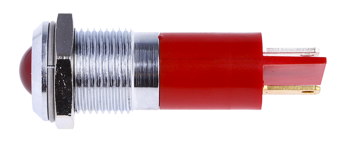 This is Red LED Indicator 24 → 36 V dc 10 mm Lamp Size 14mm Mounting Hole Size manufactured by RS Pro. The manufacturer part number is 209-074. The product has a current rating of 17ma. Moreover, the product has a nominal 24 → 36v dc voltage rating. Its accurate length is 47mm. It is a type of led lamp.