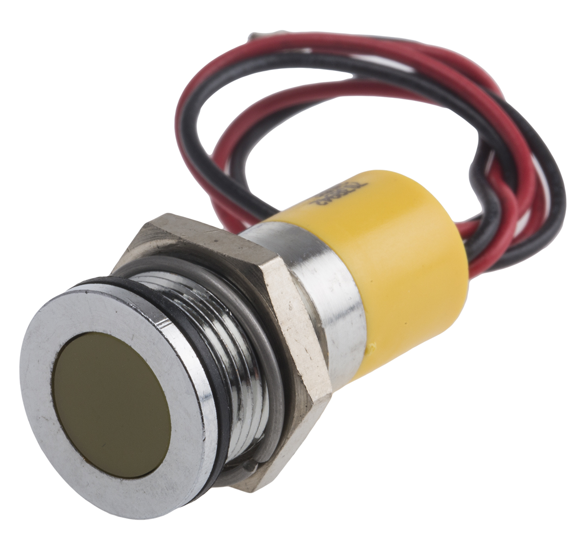 This is Flush Indicator Panel Mount 14mm Mounting Hole Size Yellow LED Lead Wires Termination 10 mm Lamp Size 24 V dc manufactured by RS Pro. The manufacturer part number is 703-8942. The product has a current rating of 20ma. Moreover, the product has a nominal 24v dc voltage rating. Its accurate length is 30.6mm. It is a type of led lamp.