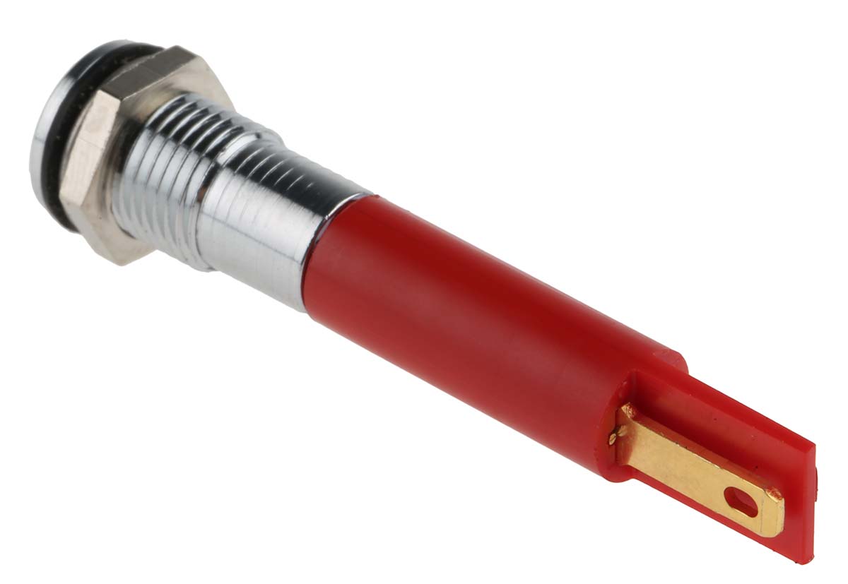 This is Flush Indicator Panel Mount 8mm Mounting Hole Size Red LED Solder Lug Termination 9.5 mm Lamp Size 220 V ac manufactured by RS Pro. The manufacturer part number is 846-2901. The product has a current rating of 3ma. Moreover, the product has a nominal 220v ac voltage rating. Its accurate length is 34.9mm. It is a type of led lamp.