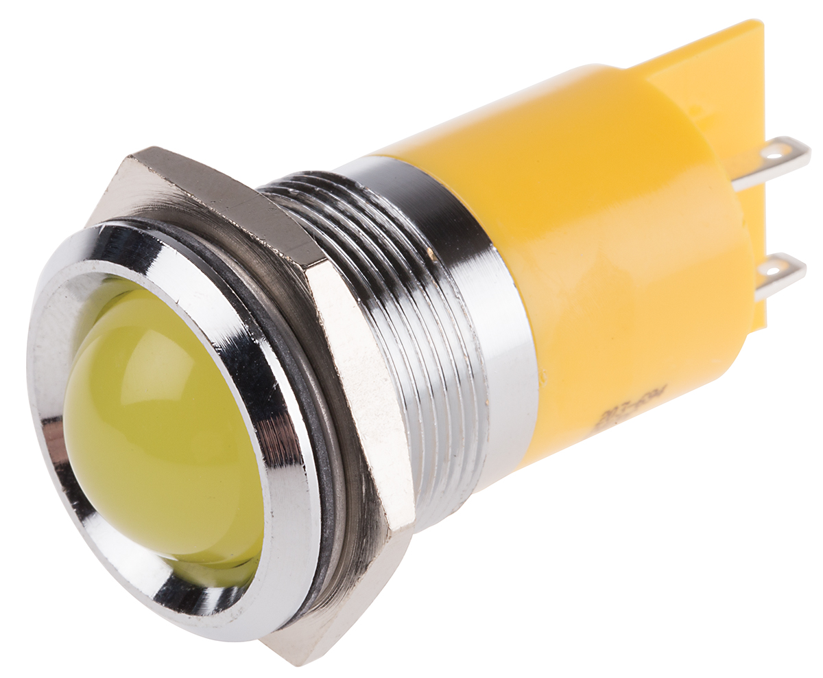 This is Yellow LED Indicator 24 V dc 18 mm Lamp Size 22mm Mounting Hole Size manufactured by RS Pro. The manufacturer part number is 203-694. The product has a current rating of 20ma. Moreover, the product has a nominal 24v dc voltage rating. Its accurate length is 61mm. It is a type of led lamp.