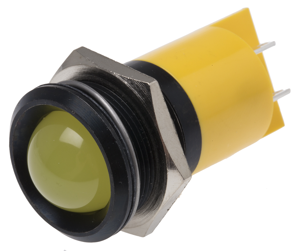 This is Prominent Indicator Panel Mount 22mm Mounting Hole Size Yellow LED Tab Termination 16 mm Lamp Size manufactured by RS Pro. The manufacturer part number is 207-056. The product has a current rating of 10ma. Moreover, the product has a nominal 48 → 65v dc voltage rating. Its accurate length is 61mm. It is a type of led lamp.
