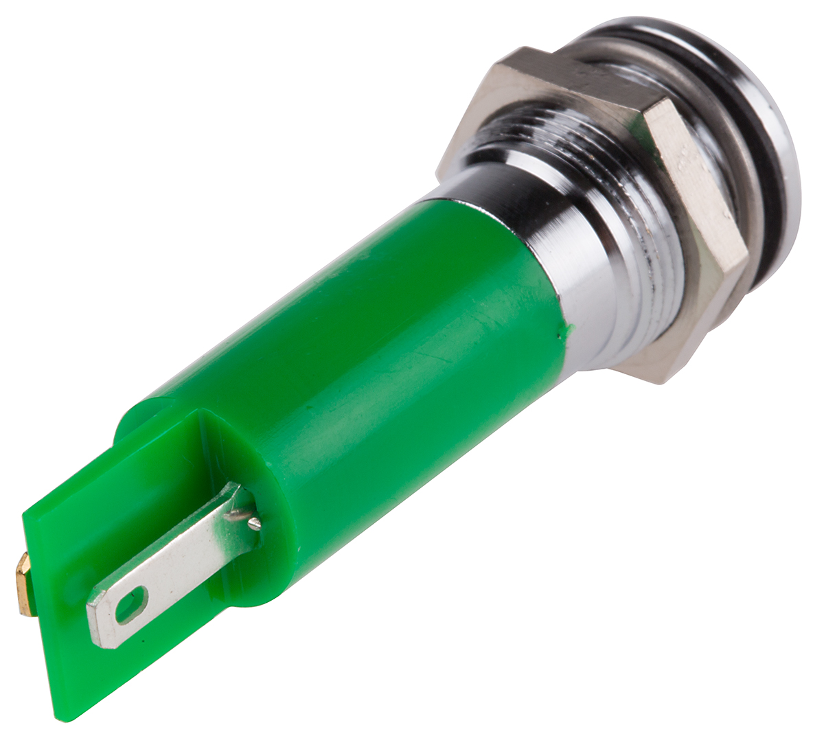 This is Green LED Indicator 230 V ac 8 mm Lamp Size 12mm Mounting Hole Size IP67 manufactured by RS Pro. The manufacturer part number is 207-286. The product has a current rating of 3ma. Moreover, the product has a nominal 230v ac voltage rating. Its accurate length is 56mm. It is a type of led lamp.