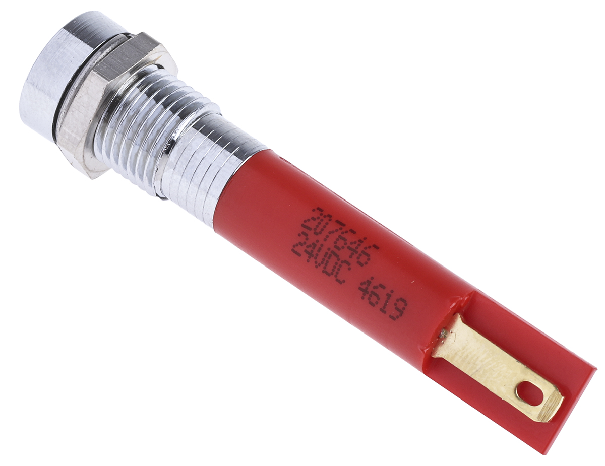 This is Red Flashing LED Indicator 24 V dc 5 mm Lamp Size 8mm Mounting Hole Size manufactured by RS Pro. The manufacturer part number is 207-646. The product has a current rating of 20ma. Moreover, the product has a nominal 24v dc voltage rating. Its accurate length is 34.8mm. It is a type of flashing led lamp.