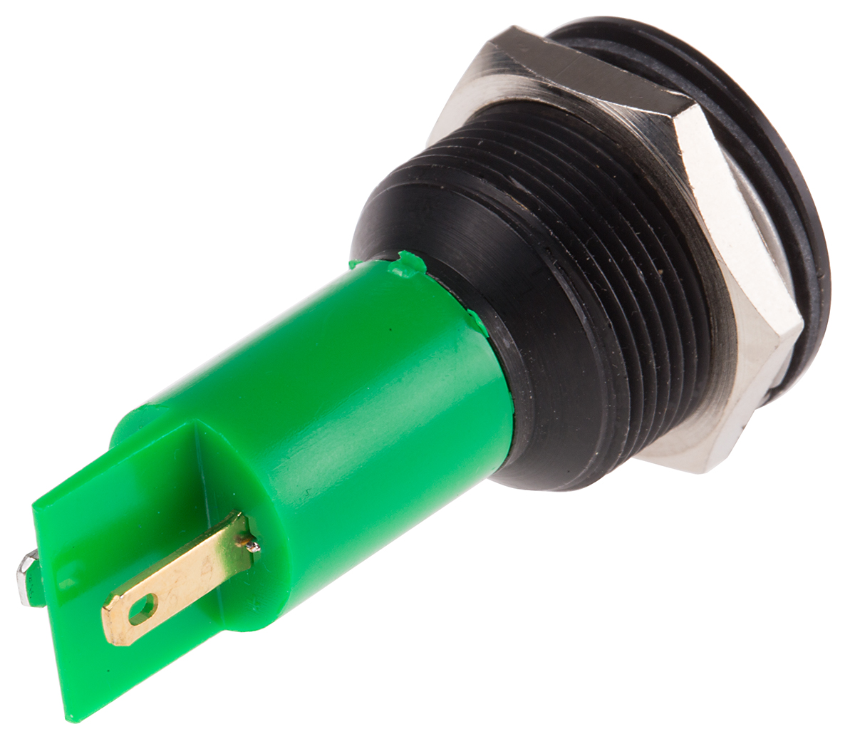 This is Prominent Indicator Panel Mount 19mm Mounting Hole Size Green LED Tab Termination 10 mm Lamp Size manufactured by RS Pro. The manufacturer part number is 208-790. The product has a current rating of 3ma. Moreover, the product has a nominal 115 v dc, 230v ac voltage rating. Its accurate length is 67.5mm. It is a type of led lamp.
