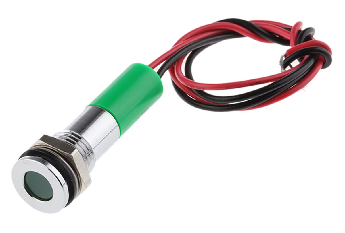 This is Green LED Indicator 220 V ac 5 mm Lamp Size 8mm Mounting Hole Size IP67 manufactured by RS Pro. The manufacturer part number is 700-1946. The product has a current rating of 20ma. Moreover, the product has a nominal 220v ac voltage rating. Its accurate length is 27.6mm. It is a type of led lamp.