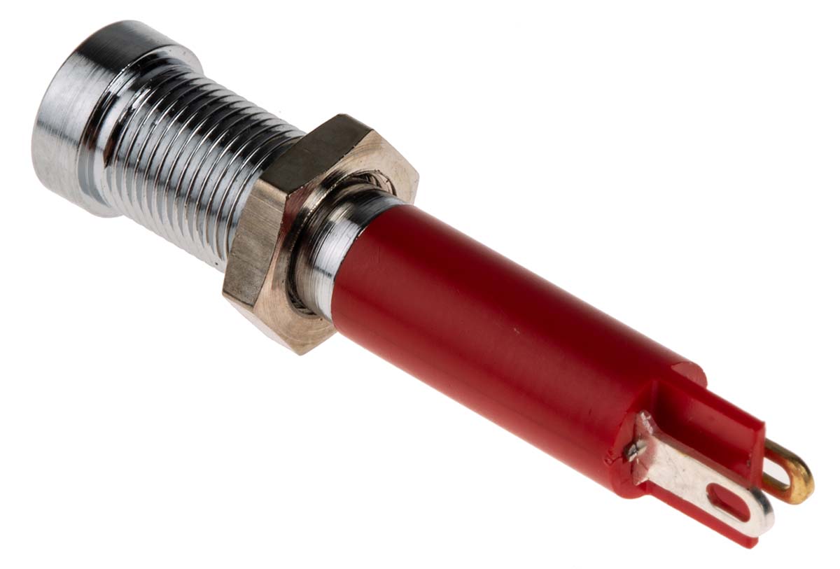 This is Red LED Indicator 24 V dc 3 mm Lamp Size 6mm Mounting Hole Size manufactured by RS Pro. The manufacturer part number is 205-016. The product is available in panel mount configuration. Moreover, the product has a nominal 24v dc voltage rating. Its accurate length is 34.4mm. The product has a current rating of 20ma. It is a type of led lamp.