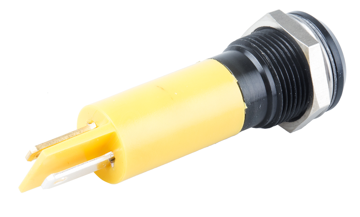 This is Yellow LED Indicator 230 V ac 8 mm Lamp Size 12mm Mounting Hole Size IP67 manufactured by RS Pro. The manufacturer part number is 206-441. The product has a current rating of 3ma. Moreover, the product has a nominal 230v ac voltage rating. Its accurate length is 56mm. It is a type of led lamp.