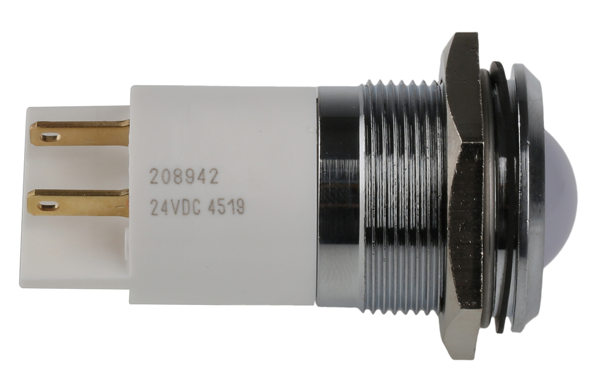 This is Prominent Indicator Panel Mount 22mm Mounting Hole Size Red/Green/Yellow LED Solder Tab Termination 18 mm Lamp Size manufactured by RS Pro. The manufacturer part number is 208-942. The product is available in panel mount configuration. Moreover, the product has a nominal 24v dc voltage rating. Its accurate length is 61mm. The product has a current rating of 20ma. It is a type of led lamp.