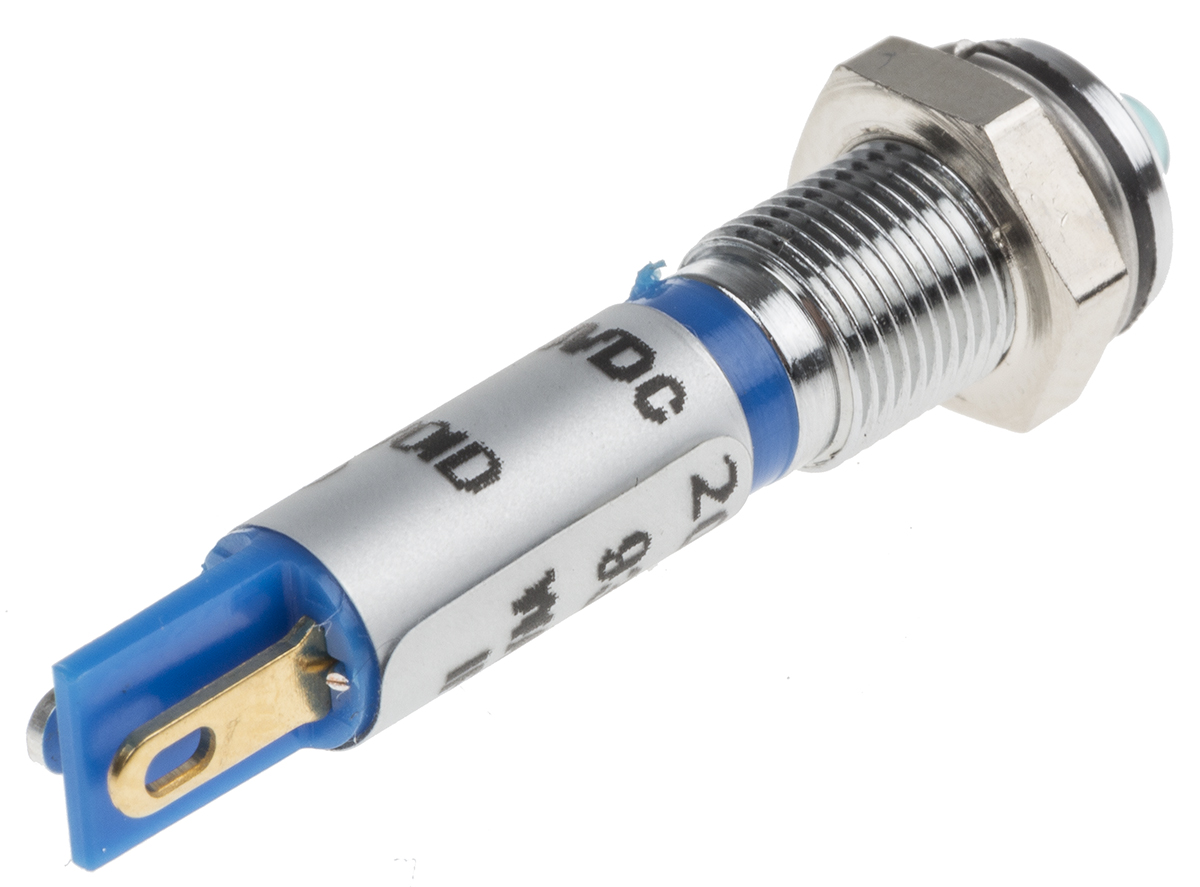 This is Blue LED Indicator 24 V dc 3 mm Lamp Size 6mm Mounting Hole Size manufactured by RS Pro. The manufacturer part number is 209-844. The product is available in panel mount configuration. Moreover, the product has a nominal 24v dc voltage rating. Its accurate length is 34.4mm. The product has a current rating of 20ma. It is a type of led lamp.