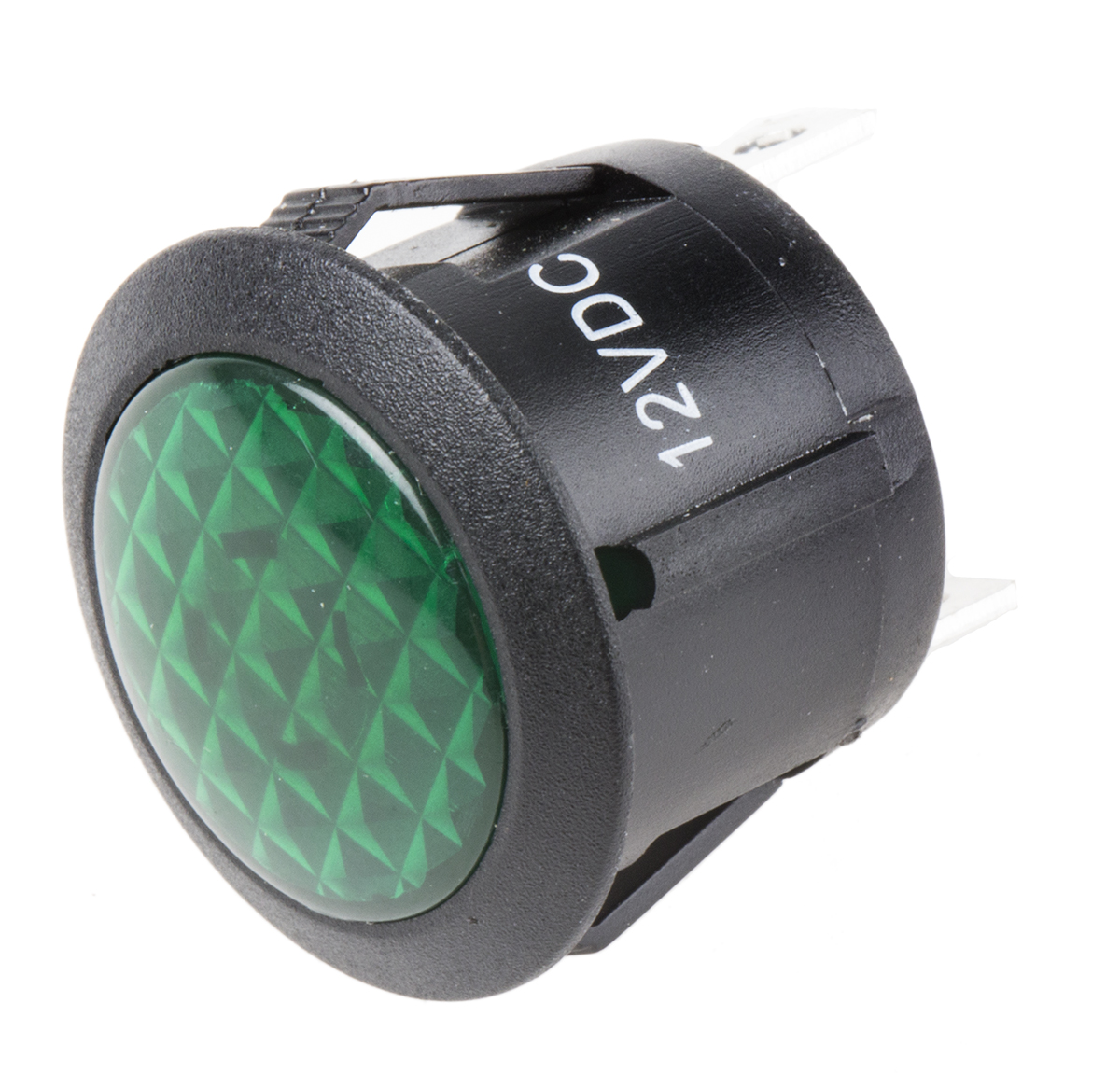 This is Indicator Panel Mount 20.8mm Mounting Hole Size Green LED Solder Termination 23 Dia. mm Lamp Size 12 V dc manufactured by RS Pro. The manufacturer part number is 793-2557. Moreover, the product has a nominal 12v dc voltage rating. Its accurate length is 14.6mm. It is a type of neon lamp.