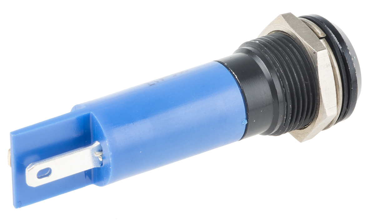 This is Blue LED Indicator 230 V ac 8 mm Lamp Size 12mm Mounting Hole Size IP67 manufactured by RS Pro. The manufacturer part number is 206-413. The product has a current rating of 3ma. Moreover, the product has a nominal 230v ac voltage rating. Its accurate length is 56mm. It is a type of led lamp.