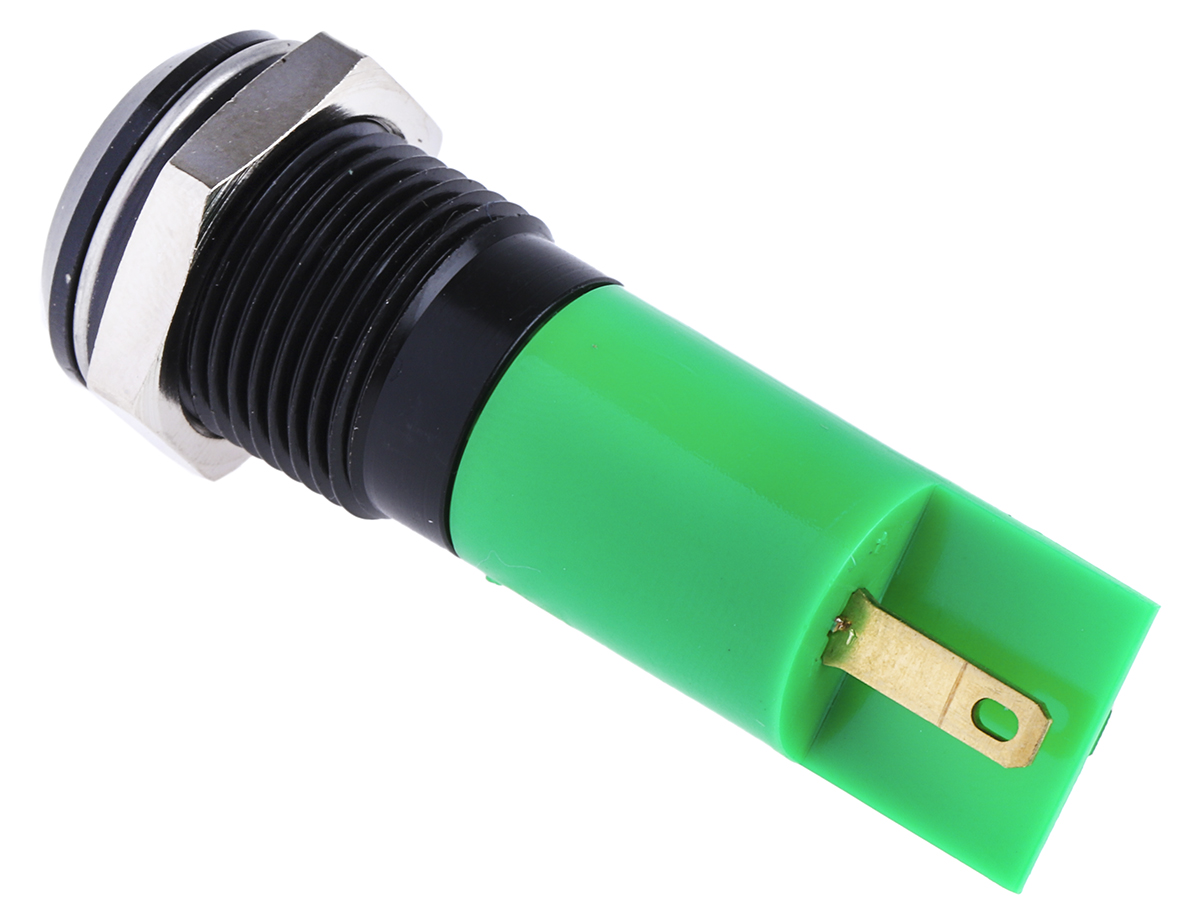 This is Prominent Indicator Panel Mount 14mm Mounting Hole Size Green LED Tab Termination 10 mm Lamp Size 230 V ac manufactured by RS Pro. The manufacturer part number is 210-462. The product has a current rating of 3ma. Moreover, the product has a nominal 230v ac voltage rating. Its accurate length is 61mm. It is a type of led lamp.