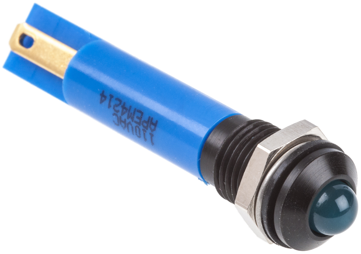 This is Blue LED Indicator 110 V ac 8.5 mm Lamp Size 8mm Mounting Hole Size IP67 manufactured by RS Pro. The manufacturer part number is 846-2737. The product has a current rating of 6ma. Moreover, the product has a nominal 110v ac voltage rating. Its accurate length is 28.9mm. It is a type of led lamp.