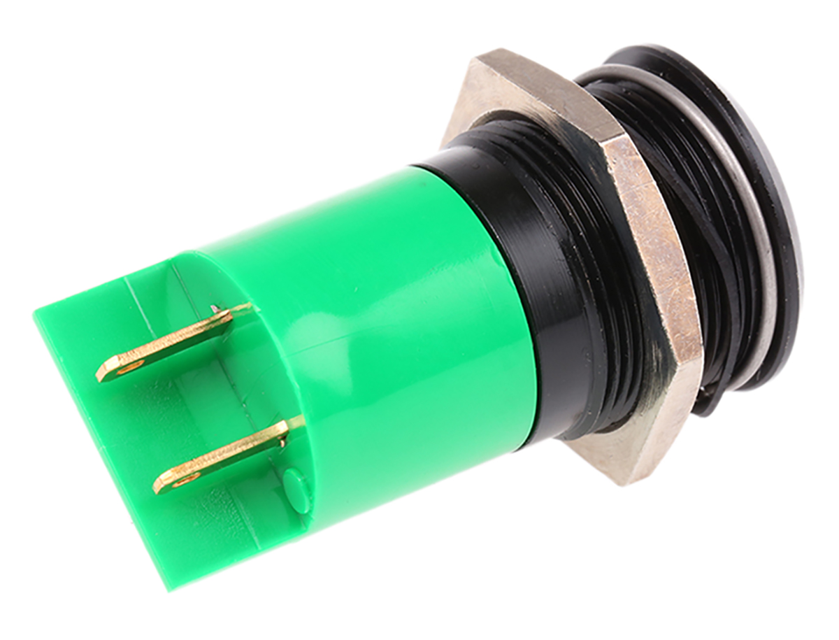 This is Green Indicator 24 V ac/dc 18 mm Lamp Size 22mm Mounting Hole Size manufactured by RS Pro. The manufacturer part number is 212-345. The product has a current rating of 20ma. Its accurate length is 51.5mm. It is a type of led lamp.