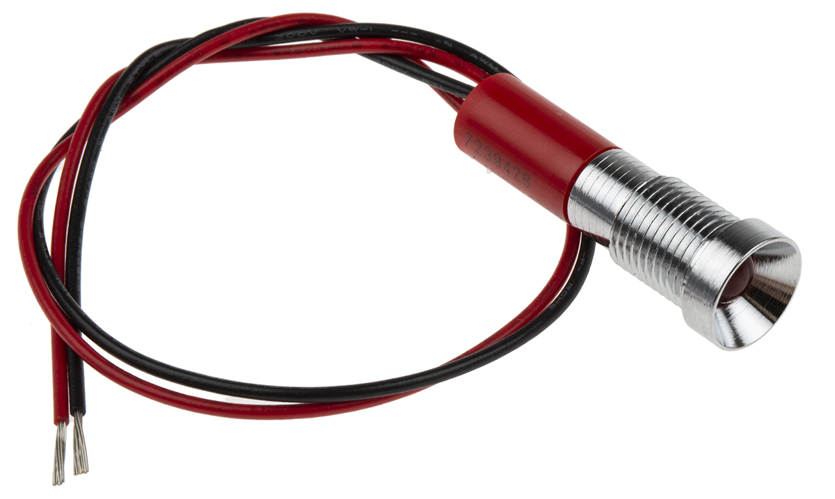 This is Red Indicator 24 V dc 5 mm Lamp Size 8mm Mounting Hole Size IP67 manufactured by RS Pro. The manufacturer part number is 723-9426. The product has a current rating of 20ma. Moreover, the product has a nominal 24v dc voltage rating. Its accurate length is 25.5mm. It is a type of led lamp.