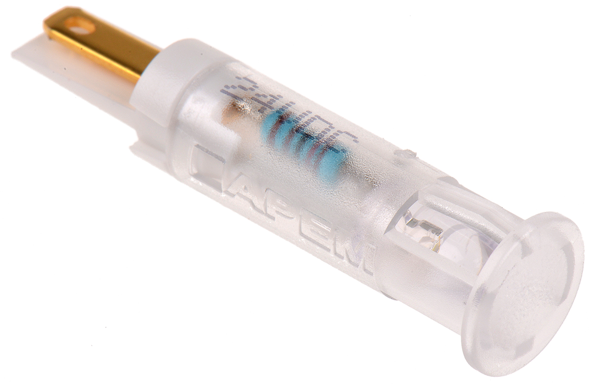 This is White Indicator 24 V dc 10 mm Lamp Size 8mm Mounting Hole Size manufactured by Apem. The manufacturer part number is QS81XXW24. The product has a current rating of 20ma. Moreover, the product has a nominal 24v dc voltage rating. Its accurate length is 28mm. It is a type of led lamp.