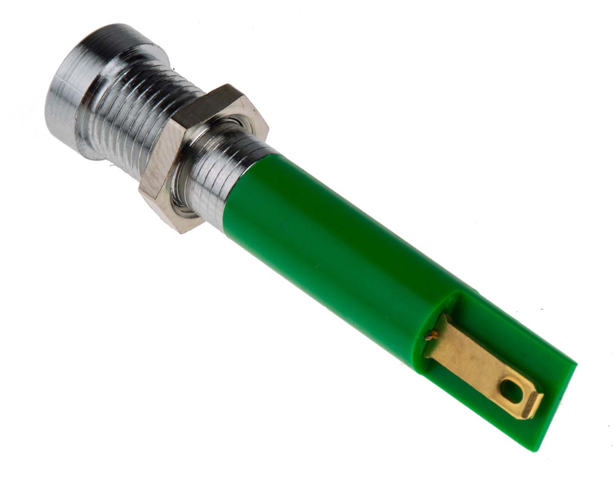This is Green Indicator 230 V ac 5 mm Lamp Size 8mm Mounting Hole Size manufactured by RS Pro. The manufacturer part number is 205-195. The product has a current rating of 3ma. Moreover, the product has a nominal 230v ac voltage rating. Its accurate length is 41mm. It is a type of led lamp.